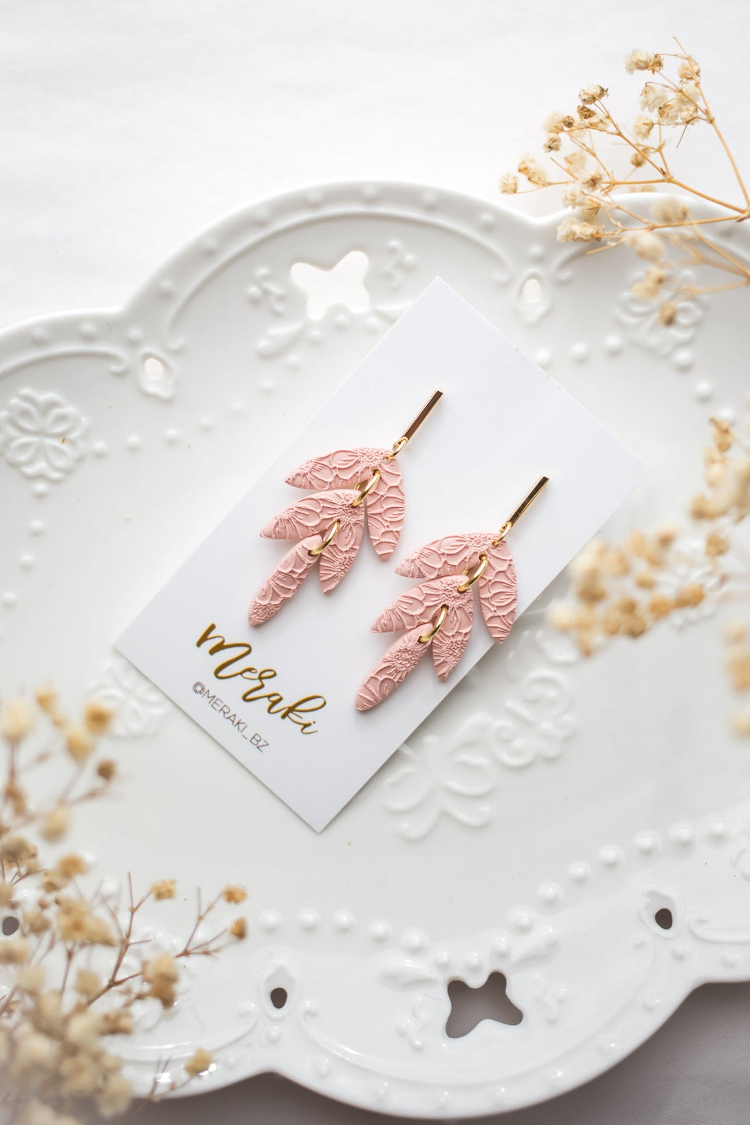 Each earring is handmade from polymer clay with 14k gold-plated or Gold filled, nickel-free hardware. Pieces are individually rolled, cut, baked, sanded, and assembled by hand, so slight variations in size and color are natural-making every pair truly one of a kind.