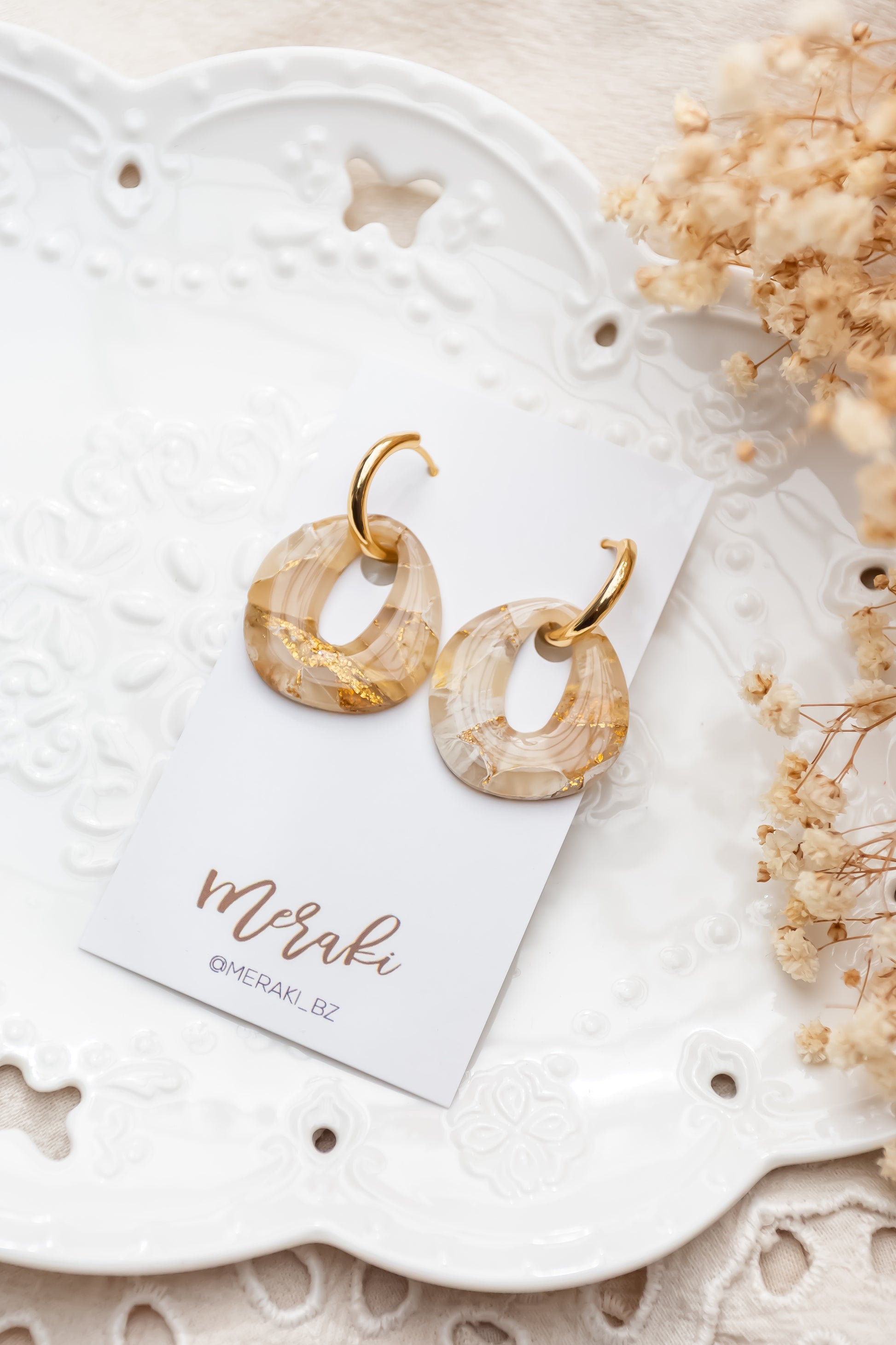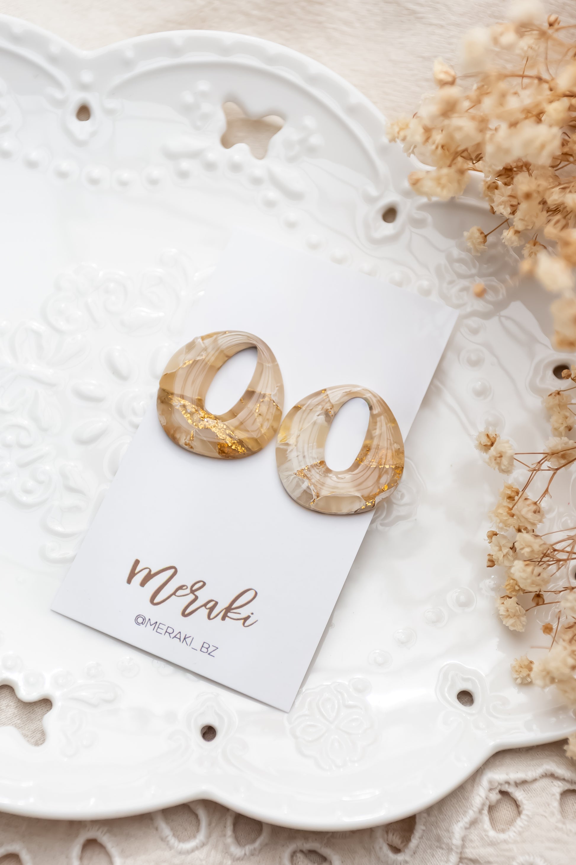 Each earring is handmade from polymer clay with 14k gold-plated or Gold filled, nickel-free hardware. Pieces are individually rolled, cut, baked, sanded, and assembled by hand, so slight variations in size and color are natural-making every pair truly one of a kind.