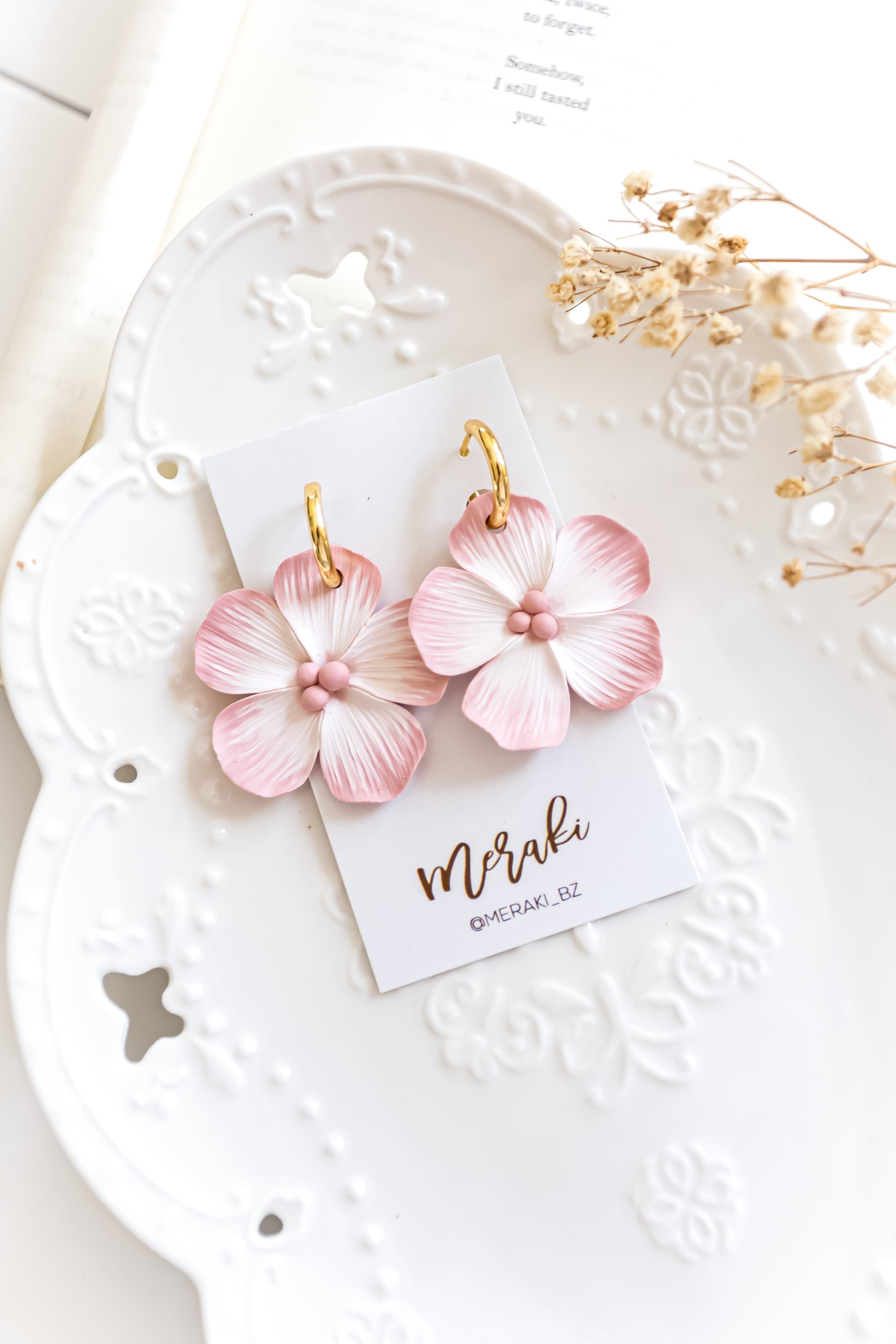 Each earring is handmade from polymer clay with 14k gold-plated or Gold filled, nickel-free hardware. Pieces are individually rolled, cut, baked, sanded, and assembled by hand, so slight variations in size and color are natural-making every pair truly one of a kind.