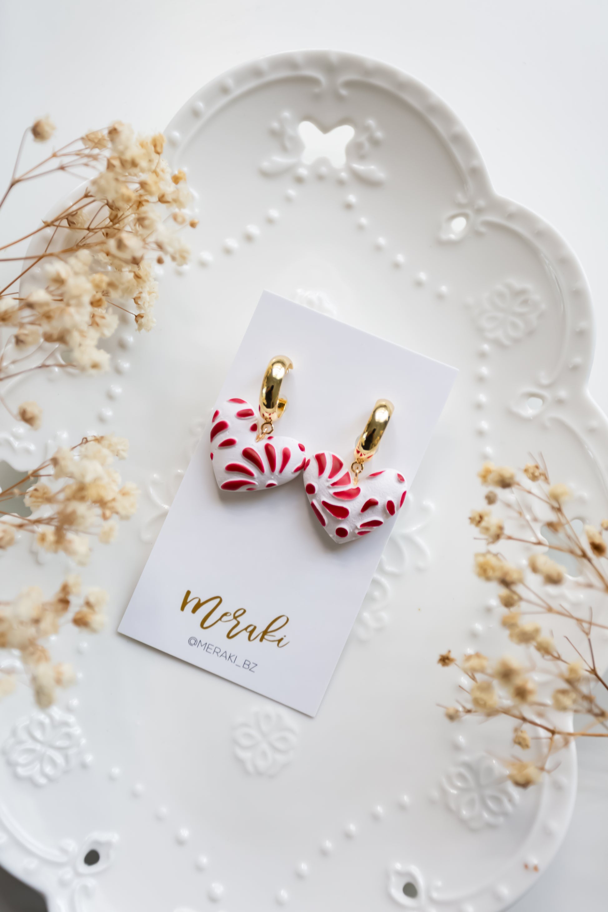 Each earring is handmade from polymer clay with 14k gold-plated or Gold filled, nickel-free hardware. Pieces are individually rolled, cut, baked, sanded, and assembled by hand, so slight variations in size and color are natural-making every pair truly one of a kind.
